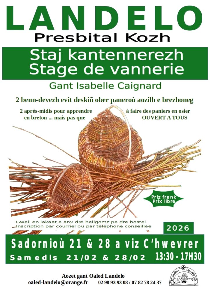 Pour toutes informations ou inscription, téléphoner 02.98.93.93.08 ou 07.82.78.24.37 ou par mail à oaled-landelo@orange.fr