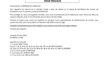 Pour répondre aux besoins de sa clientèle, Enedis a prévu de réaliser sur le réseau de distribution des... Read More → Coupure d’électricité prévue le 27 mars 2026