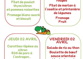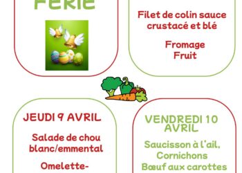 ... Read More → Menu de la cantine du lundi 30 mars au vendredi 02 avril 2026