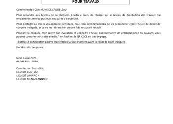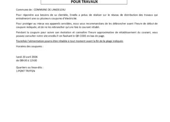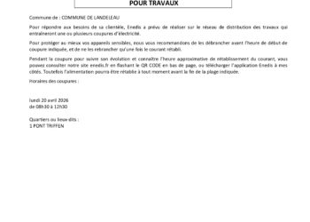 Pour répondre aux besoins de sa clientèle, Enedis a prévu de réaliser sur le réseau de distribution des... Read More → Coupure d’électricité le 20 avril 2026