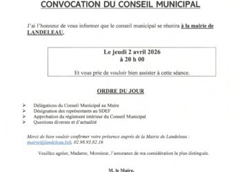 Le conseil municipal se réunira le jeudi 02 avril 2026 à 20h00 avec comme ordres du jour :... Read More → Conseil Municipal jeudi 02 avril 2026 à 20h00