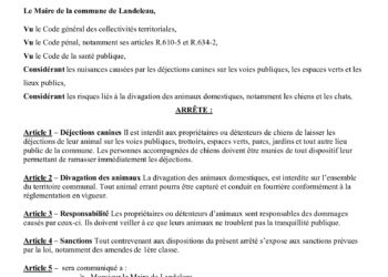 Arrêté municipal portant réglementation relative aux déjections canines et à la divagation des animaux sur le territoire communal