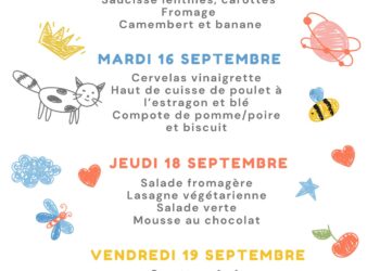 Menu de la cantine du 15 au 19 septembre 2025
