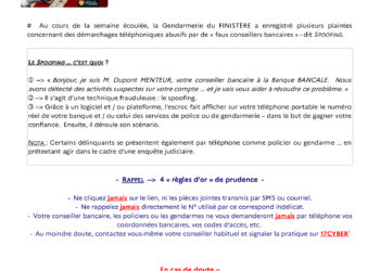 Au cours de la semaine écoulée, la Gendarmerie du FINISTÈRE a enregistré plusieurs plaintes concernant... Read More → ALERTE ARNAQUE INTERNET ET SPOOFING