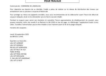 Pour répondre aux besoins de sa clientèle, Enedis a prévu de réaliser sur le réseau de distribution des... Read More → Coupure d’électricité prévue par ENEDIS le 16 septembre entre 08h30 et 12h45